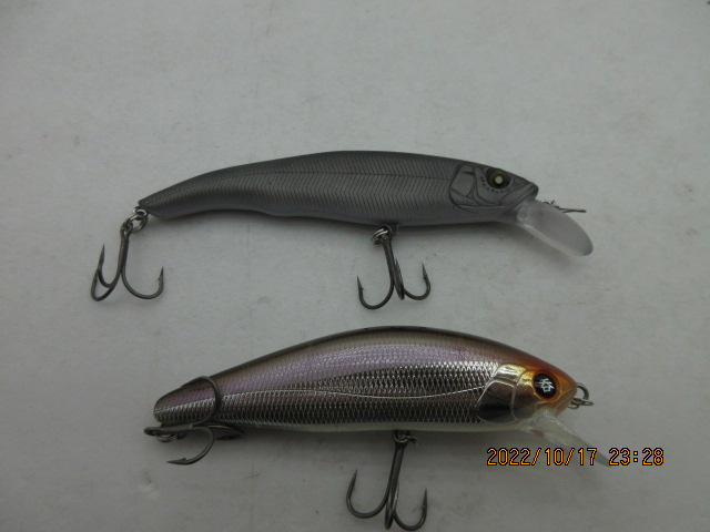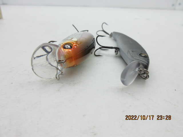 ミノーとクランクの中間から少しミノーに寄せた感じのルアーです。なのでダート幅は少ないです。巻いて使っていますが小さいバスも釣れています。ふとマッチョな形なので浮力も多少強めです。なんか画像に日付が・・・夜中に何やってるんだって感じですな。